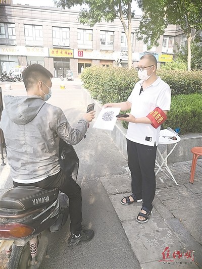 市体校党员志愿者在帮扶社区开展社区防控工作。