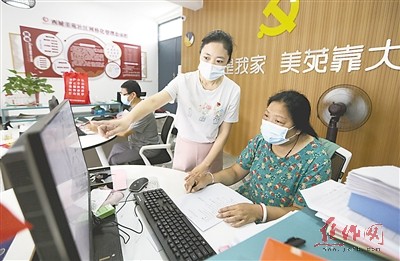王培(中)和同事在电脑上录入外地来焦人员信息。