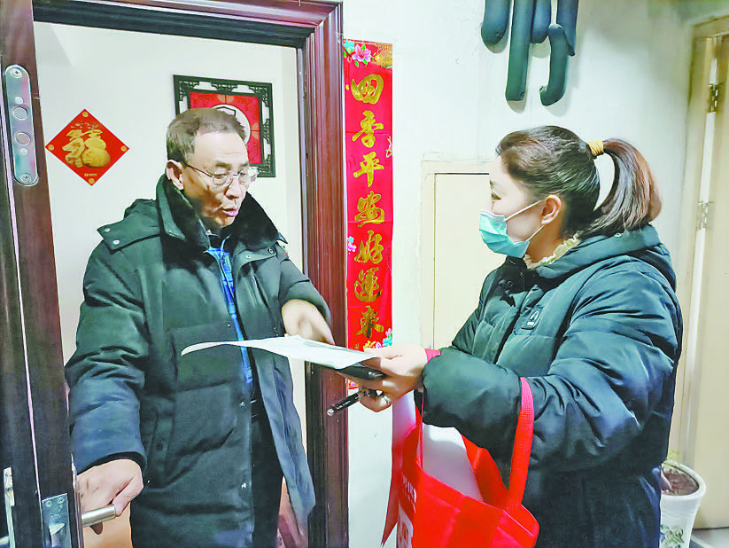 市体育系统下沉一线的党员干部入户排查居民家庭情况。