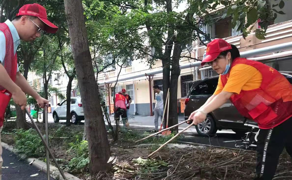 市应急管理局党员志愿者在山阳区工字路社区轮四小区打扫卫生,积极开展“支部联支部,党员进社区”志愿服务活动。