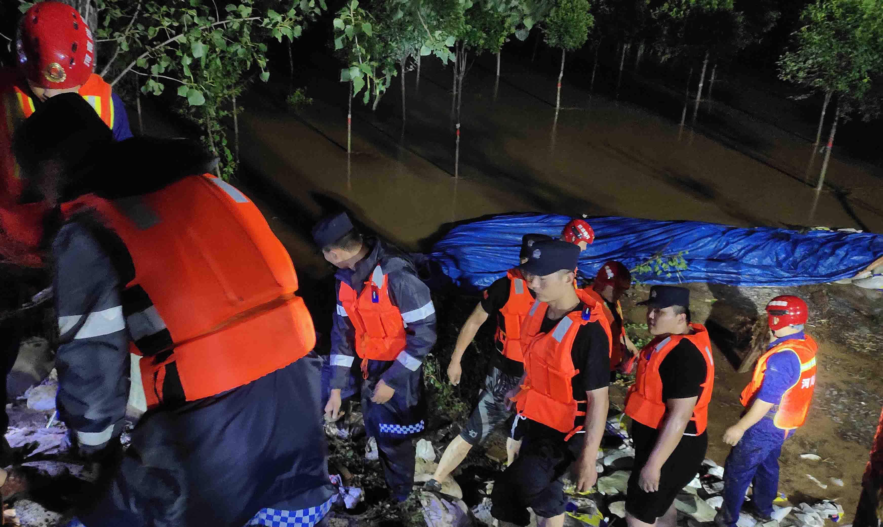 “桥下积水无法通行,可以沿着这条路向东绕行……”7月20日11时许,在马村区文昌路新月铁路桥南侧路口,马村交警大队的多名交警正在冒雨执勤,提醒过往车辆和行人。从7月18日起,他们值班备勤,昼夜奋战,已经多日没有回家了。
