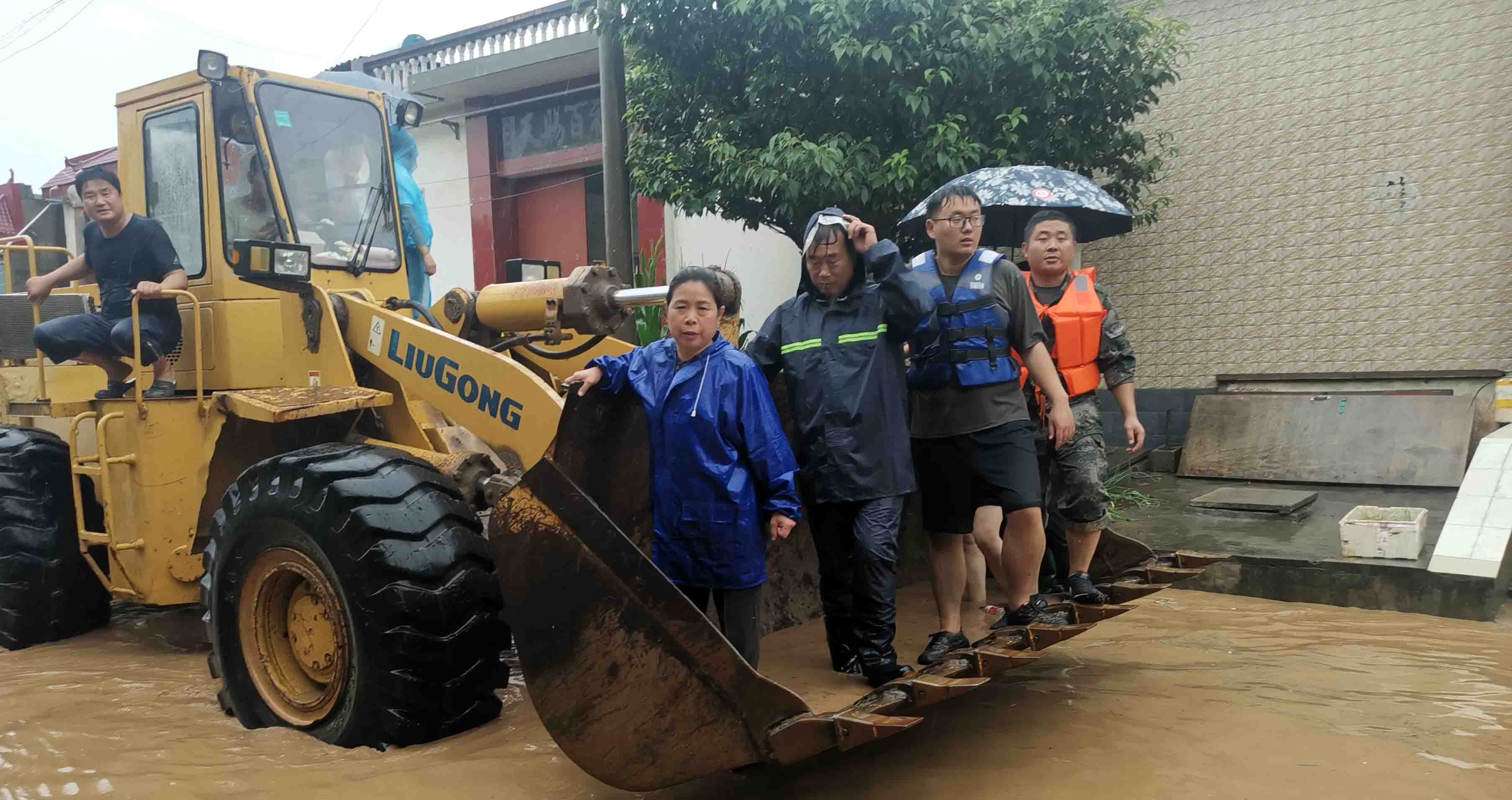 这边的待王村里,待王街道防汛指挥部组织党员干部、入党积极分子、预备党员、民情联络员以及热心村民奋力抢险,1个小时转移群众4000余人,救出1000多名受困村民。