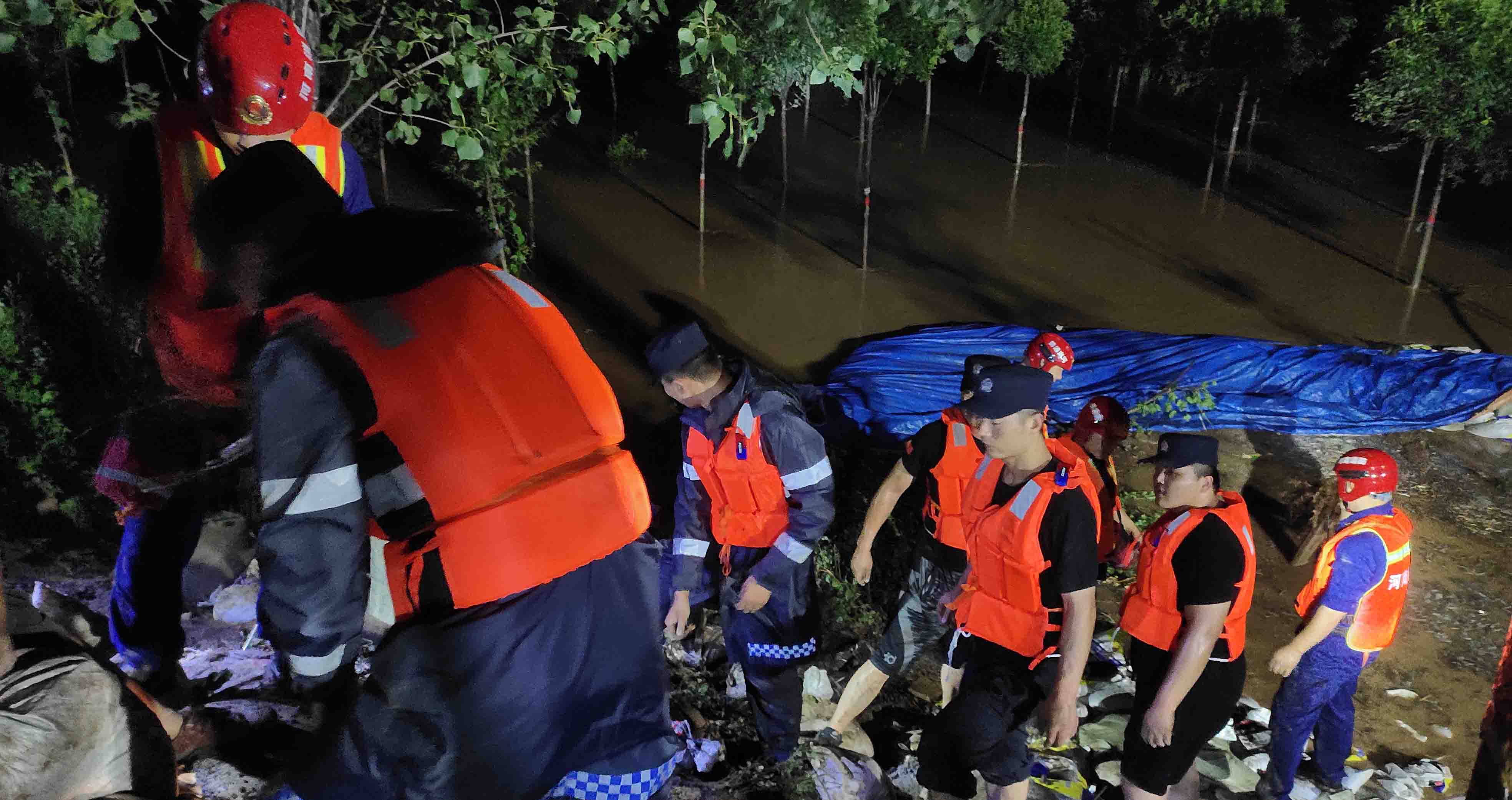 “桥下积水无法通行,可以沿着这条路向东绕行……”7月20日11时许,在马村区文昌路新月铁路桥南侧路口,马村交警大队的多名交警正在冒雨执勤,提醒过往车辆和行人。从7月18日起,他们值班备勤,昼夜奋战,已经多日没有回家了。