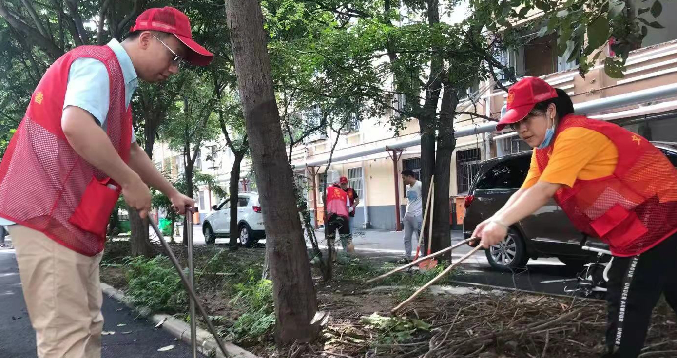 市应急管理局党员志愿者在山阳区工字路社区轮四小区打扫卫生,积极开展“支部联支部,党员进社区”志愿服务活动。