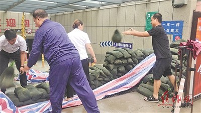 为了业主的财产安全,金山·东方花园地下停车场关闭使用,所有车辆只许出,不许进。由于部分业主人在外地,无法及时赶回焦作,金望物业东方花园服务中心安排工作人员将地下停车场的出入口叠放近1米高的沙袋,尽可能保证业主的财产安全。