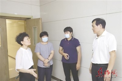 焦作同仁医院理事长姜玉霞(左一)在指导医院防汛工作。