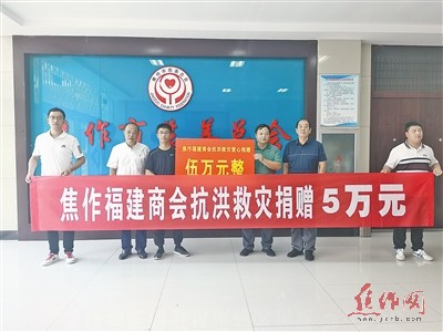 洪水无情,人间有爱。为发挥商会力量、助力防汛救灾,市工商联发出倡议书,倡议各级工商联、商会、会员企业发扬团结互助的精神,全力为焦作抗汛救灾贡献力量。焦作福建商会迅速响应,主动承担社会责任,积极筹备现金、物资等。7月29日,该商会多家会员企业捐助的5万元现金捐赠仪式在焦作市慈善总会举行。截至目前,该商会共捐赠55万元现金、35万元物资给受灾地区。