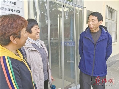 上图 白建立(右)和居民聊天。