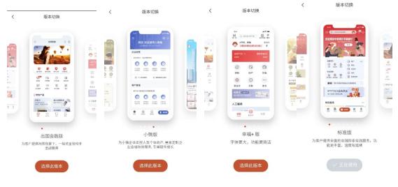 中信银行app可以自行选择最适合自己的版本,除了标准版之外,还有针对出国金融、小微,以及适合老人、军人、海外、私人银行等版本。