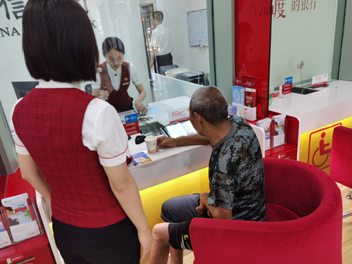 由于老人腿部严重残疾走路不稳,工作人员主动搀扶客户,客户满怀感激,中信银行郑州分行工作人员耐心与客户沟通,打消其顾虑,提示老人不用着急,小心落座。因老人仅有一只手可以活动,掏钱的过程十分艰难,工作人员主动帮助,帮客户把辛苦积攒小心保管的钱拿出。柜员耐心清点零钱,并记录每个币种对应的金额以便老人计算,当柜员把兑换后的整钱递给老人时,老人连连道谢,热泪盈眶,对中信的服务赞不绝口。