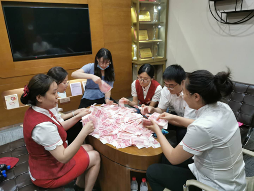 在了解到企业因洪水浸泡的164万现金无法处置的困境后,中信银行安阳解放大道支行第一时间协调同城支行网点的3台现金消毒柜,送往企业协助其开展现金烘干、消毒等工作。由于大量现金纸币受损严重,已不再适合流通,为解决企业现金流动性难题,支行行长带领3名运营人员、3名零售人员及企业财务人员携带现金到支行网点进行除湿、烘干、清点、兑换。与此同时,支行会计经理也在第一时间向安阳分行运营部汇报情况,并积极协调分行营业部现金库筹措资金。由于时间紧、任务重,全体支行员工午餐亦简餐,放弃午休,同时启动3台现金消毒柜、3个电吹风机、2台点钞机、1台现金清分机,区分湿币、潮币、干币三个程度进行流水线作业,经过7个小时争分夺秒的不间断工作,最终高效、无误地为客户完成了164万元的现金兑换。为保障客户人身财产安全,为客户安排专程车辆回到厂区。