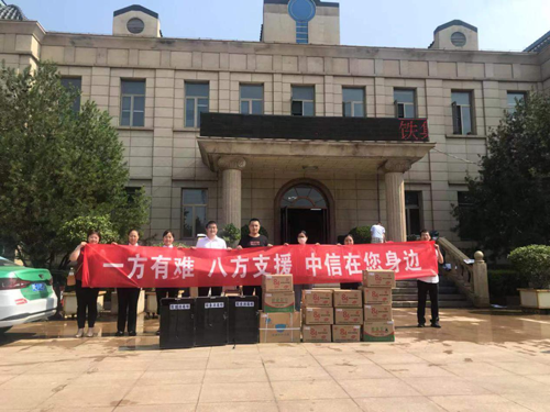 在了解到相关情况后,7月25日,中信银行安阳解放大道支行全体员工牺牲假日休息时间,在支行长的带领下,分工协作,内外坚守,在灾后第一时间向受灾企业送去一次性口罩、消毒液、酒精等防疫物资。