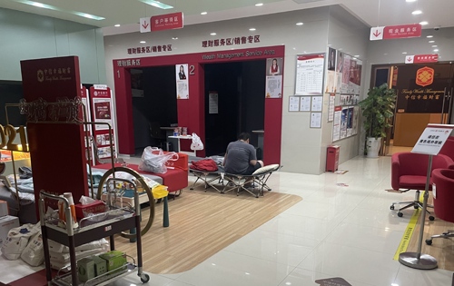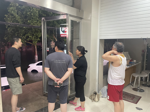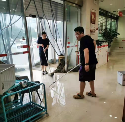 图片:组织群众进入营业厅避雨,员工拿出自己的折叠床供受困群众使用