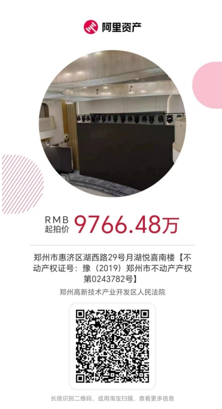 望有需求和有意向的客户积极参与拍卖或向他人推荐,大家可扫描附件中拍卖二维码或在淘宝网阿里拍卖中搜索“郑州月湖西路29号”、“惠济区月湖西路29号”等关键词进入房屋拍卖界面。咨询、展示看样的时间与方式:即日起至2024年6月21日10时止接受咨询,有意者请与中信银行郑州分行联系统一安排看样。如有疑问,请咨询邹经理15286835136。