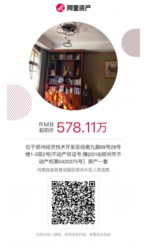 近日河南自由贸易试验区郑州片区人民法院将依法拍卖抵押于中信银行郑州分行的房产,该房产位于郑州经济技术开发区经南九路69号28号楼1-3层2号(联排别墅),南北通透,独立小院,建筑面积为298.42平方米,小区倚湖而居,环境优美,位置优越、交通便利,市场评估价为7833500元,现二拍起拍价为5781123元(均价1.93万/平米)。河南自由贸易试验区郑州片区人民法院将于2025年4月26日10时起至2025年4月27日10时止(延时的除外)在淘宝网司法拍卖网络平台上进行公开拍卖活动。