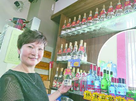 赵红霞在向记者展示酒柜里焦作地产白酒怀川玉液的亲民价格。