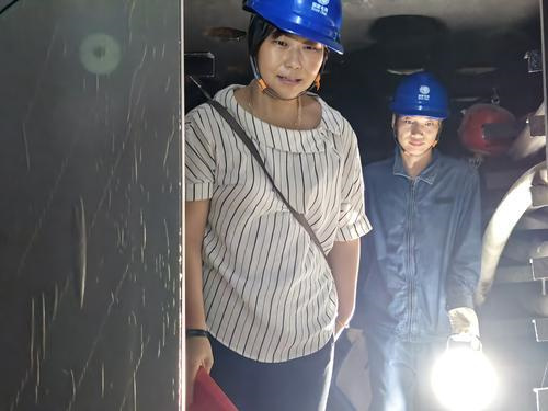 图② 记者(左)跟随配电电缆运检员进入到地下电缆隧道进行巡检工作。