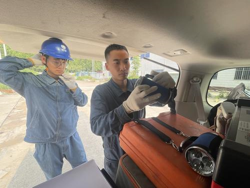 图① 苏云龙(右)正在等待同事用仪器对电缆进行检测,以记录实时数据。