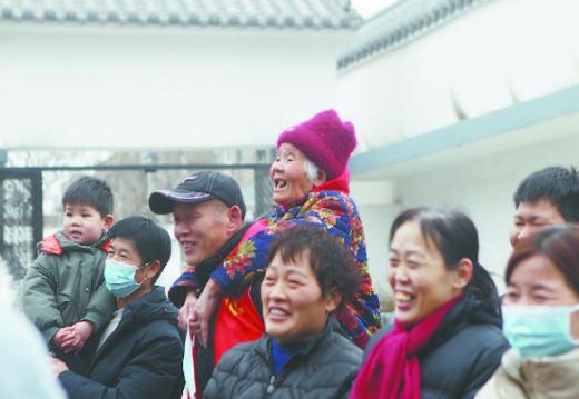 2月14日上午,冯营街道在党建综合体初心苑内为辖区老人组织了一场简单又热闹的元宵节演出,张战全想到李花老人爱看热闹却又行动不便,于是来到老人家中,背起她去初心苑看演出。当天,围观群众多,张战全担心老人看不见,又怕她被挤着,就背着老人看完了表演。