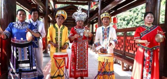 中新网恩施8月21日电 (武一力)“咚锵、咚锵、咚咚锵……”锣鼓间歇,歌声即起,近日,一场在湖北省恩施土家族苗族自治州宣恩县一景区上演的三棒鼓表演吸引游客驻足围观。