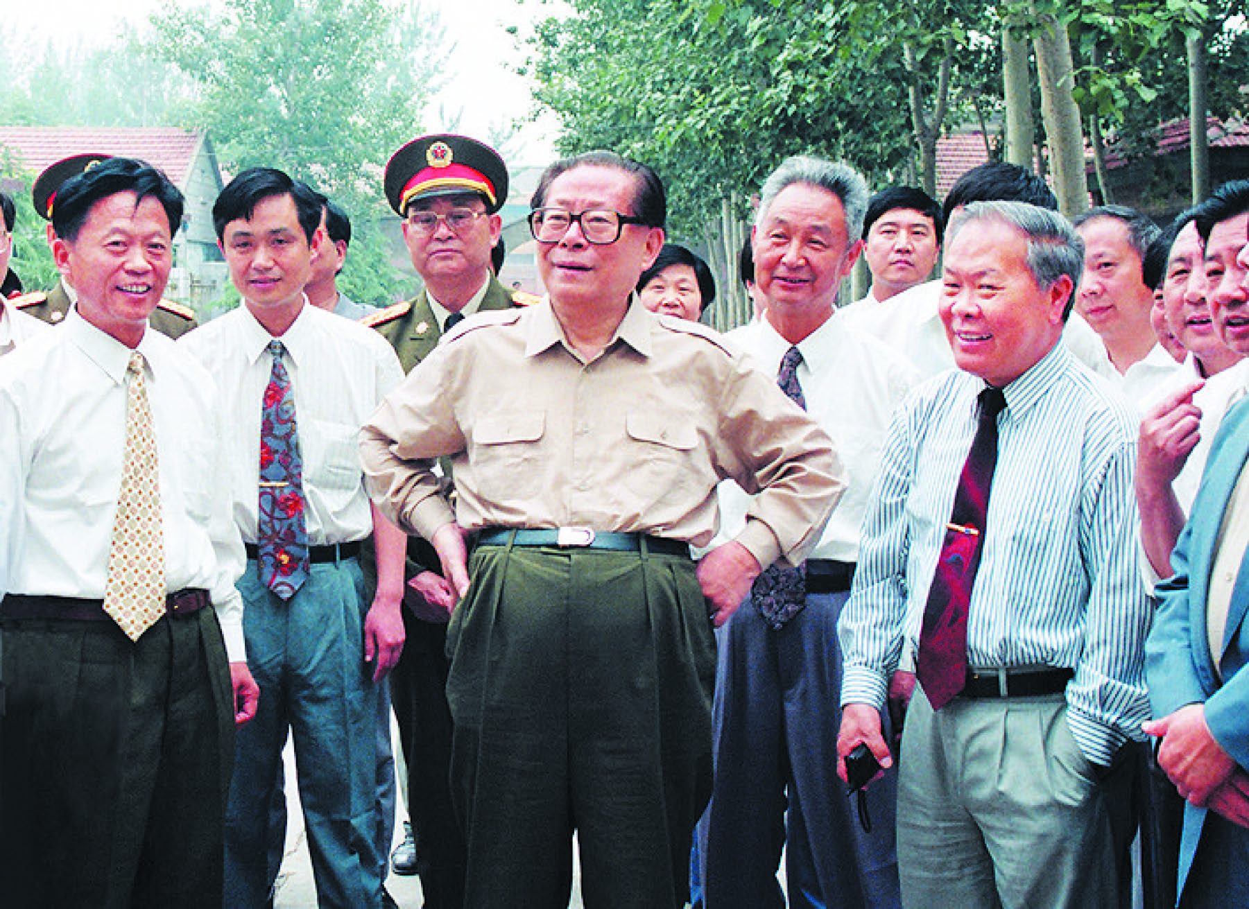 6月3日上午,江泽民一行来到沁阳市万北村农民住宅小区。这是一个农民居住的别墅群,几十家农户所住都是清一色的马赛克贴面两层红瓦小楼,基本达到了现代化住宅标准。