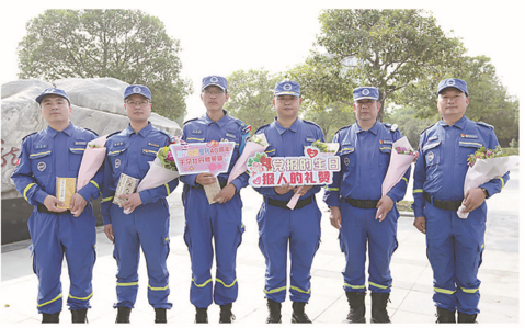 “蓝天”队员杨三丰手捧着牡丹花,心情激动地说:“今后,我们‘蓝天’将继续秉承发扬人道、博爱、奉献的志愿精神,始终坚持公益方向,全力以赴守护群众生命安全。”