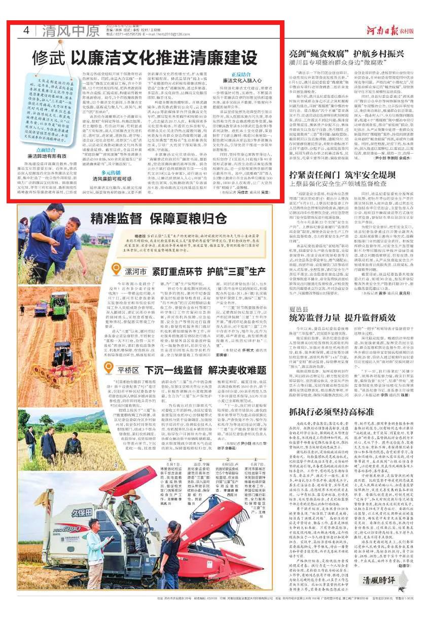 丰富廉洁文化优质供给。举办“清廉修武你我同行”廉政书画、摄影展,营造崇廉尚廉的浓厚氛围。联合云台古镇打造两部廉政节目--《百代文宗》和《县令审案》,进行演出40余场,让廉洁思想深入人心;开展“传承优良家风、弘扬廉政清风”专场演出6场,推动廉洁文化向基层生根开花。