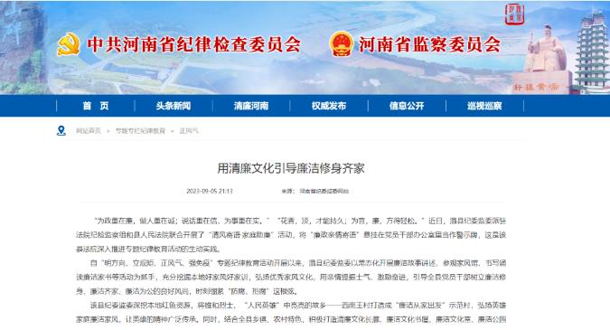该县纪委监委深挖本地红色资源,将维和烈士、“人民英雄”申亮亮的故乡——西南王村打造成“廉洁从家出发”示范村,弘扬英雄家庭廉洁家风,让英雄的精神广泛传承。同时,结合全县乡镇、农村特色,积极打造清廉文化长廊、廉洁文化书屋、廉洁文化室、廉洁公园等廉政教育示范点,教育引导党员干部筑牢廉洁防线。