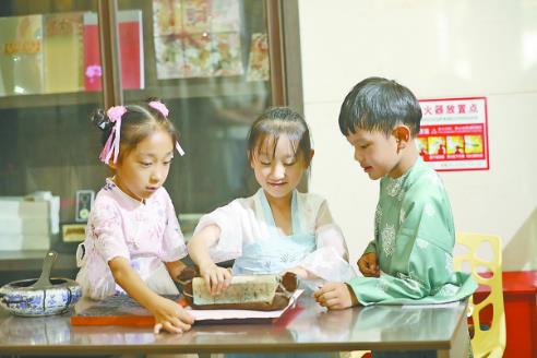 市博物馆相关负责人介绍,端午期间,焦作市博物馆持续开展免费汉服体验、木版拓印、古潮投壶、二胡演奏、定时汉服讲解等多项活动,还推出了“一举高中 前程似锦”书画活动、端午节互动打卡、DIY五彩绳、射五毒游戏以及有奖知识竞答等活动,众多活动吸引市民朋友们前来馆内参观游玩,尤其是投壶、拓印活动给孩子们带来了不一样的体验,二胡演奏也吸引家长和孩子驻足欣赏。到馆的游客都免费领取到五彩绳一条,大家手戴五彩绳,身穿汉服,在博物馆内感受到了浓浓的端午节气息。除了线下馆内活动,该馆还在微信公众号开设了端午节知识科普专栏,假期里通过不同方式给家长和孩子带来更多的研学体验。