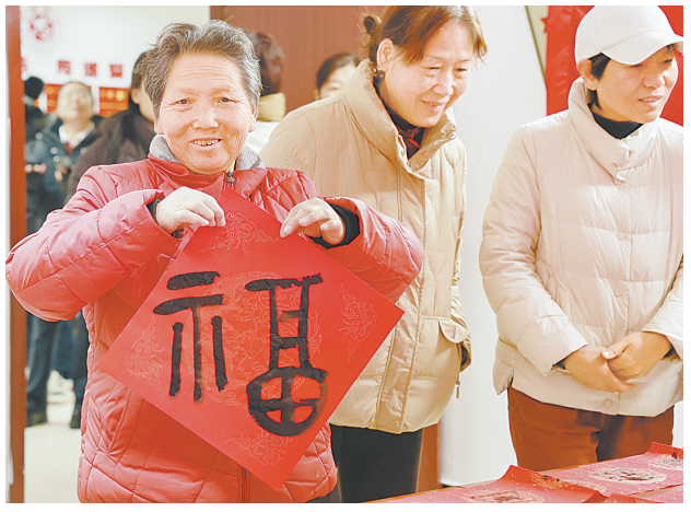 当天,社区党群服务中心内暖意融融,市文联的书法家们饱含热情,在一张张鲜艳的红纸上挥毫泼墨、一气呵成,有行书、楷书、隶书、篆书,一副副春联和一个个福字饱含喜气和美好祝福。